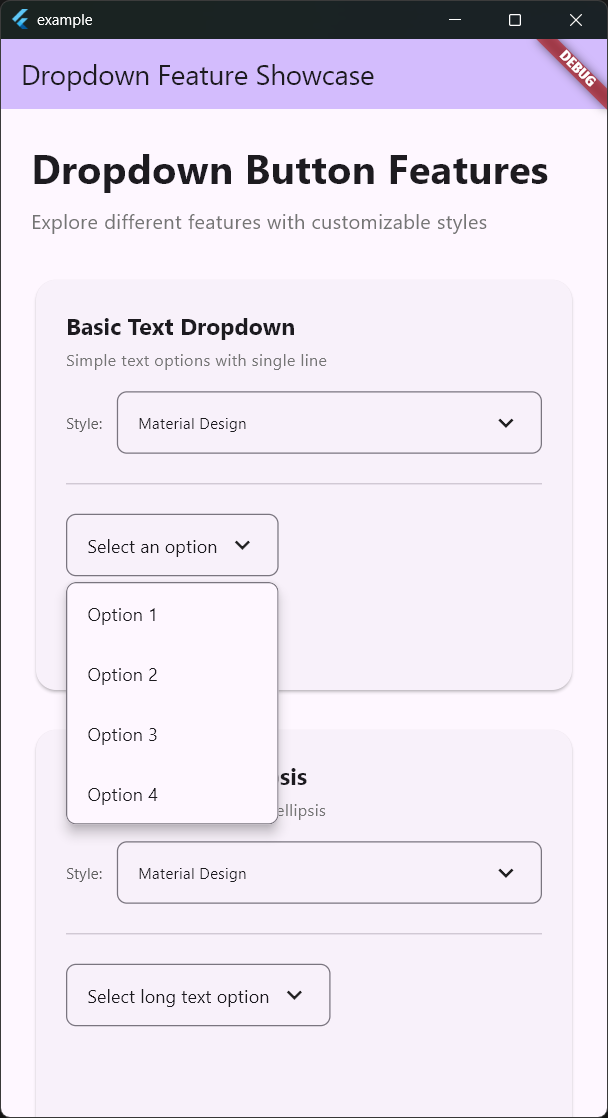 • Single Unified Widget: One FlutterDropdownButton<T> for custom widget mode and text-only mode (.text())
